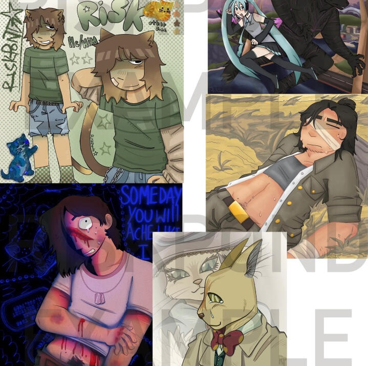 Hello I’m Risk and welcome to my Carrd, I’m a digital artist/ illustrator and currently pursuing art school. I mainly post fandom / original character content. My artwork may contain gore,heavy topics, & suggestive content,